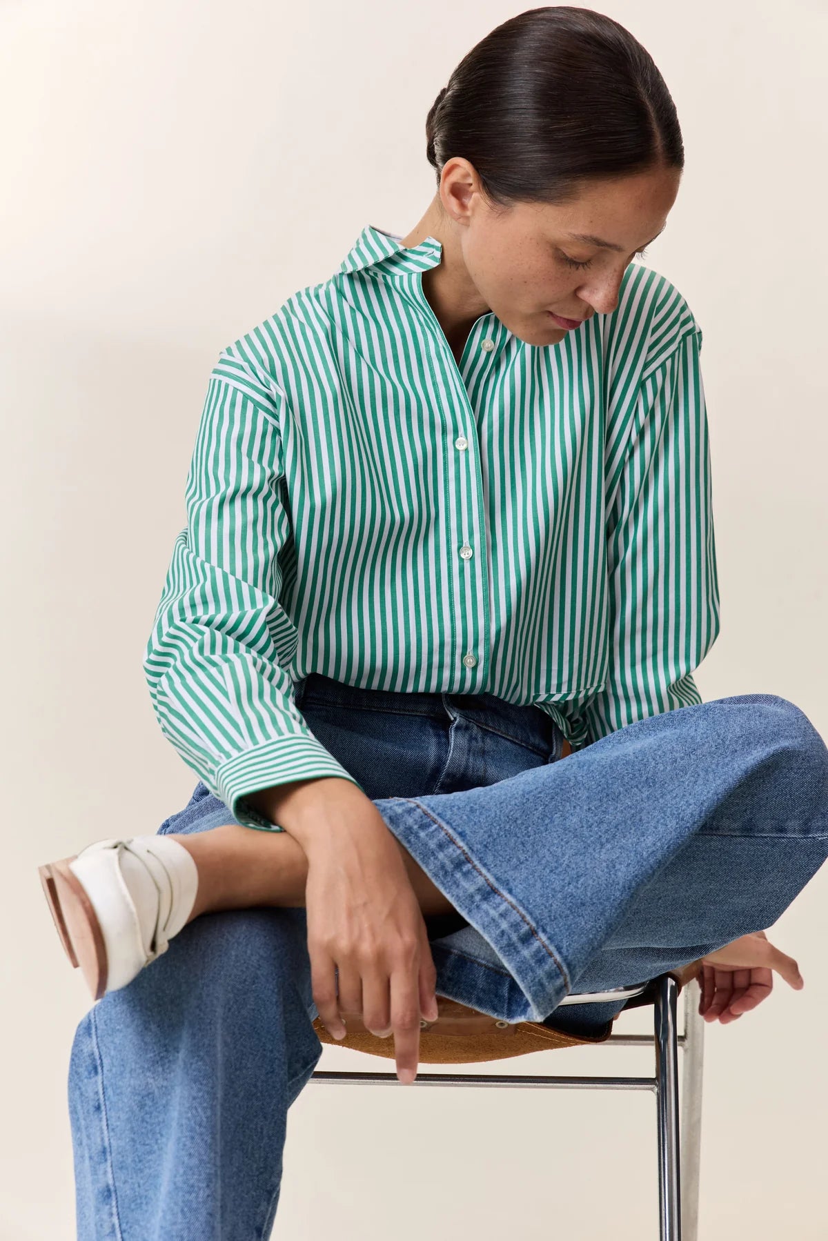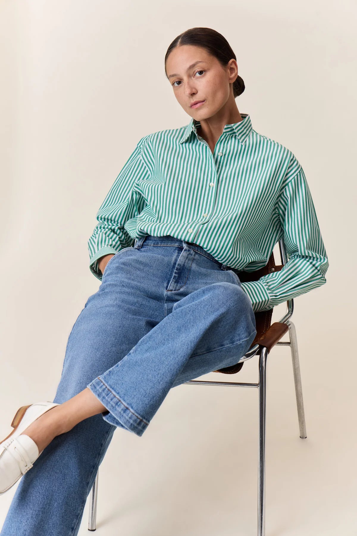 La chemise Celen Strp s’inscrit dans l’esprit casual chic de Leon & Harper, grâce à sa coupe ample et son motif à rayures. Entièrement confectionnée en coton, elle associe un col classique, une patte de boutonnage discrète et des manches longues à poignets fermés par boutons. Les épaules tombantes et le pli d’aisance au dos apportent souplesse au tombé. À porter avec un jean pour composer un look urbain ou un pantalon ajusté pour plus de structure.