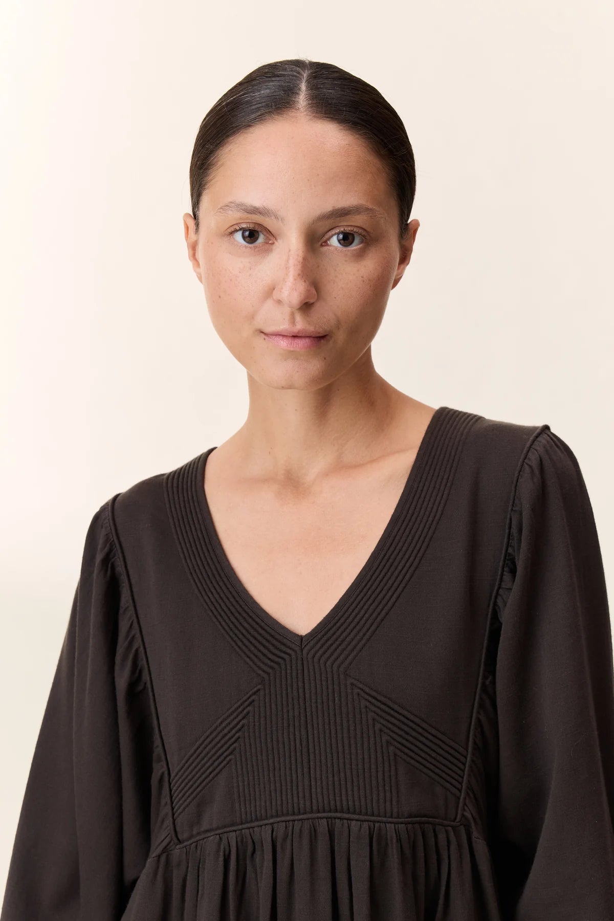 - Décolleté en V marqué